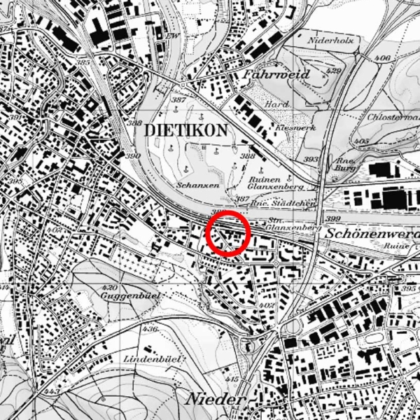 Ersatzneubauten mit Gewerbe- und Wohnnutzungen, Entwicklungsstrategie (Ideenperimeter) und Projektvorschlag (Projektperimeter), Dietikon