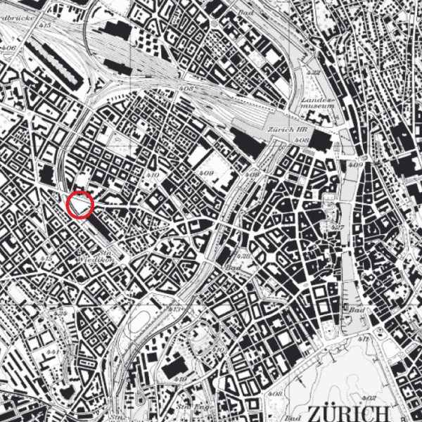 In einem vom Verkehr umbrandeten Geviert zwischen der Badenerstrasse, der der Kalkbreitestrasse und der linksufrigen Seebahn wird eine urbane Grossform vorgschlagen. Von Aussen zeigt sich der Entwurf als grossmassstäbliche Figur. Durch eine öffentliche Treppe gelangt man auf das Dach der unter dem Hof liegenden Tramhalle in eine Gegenwelt: einen ruhigen, grünen Dschungel.