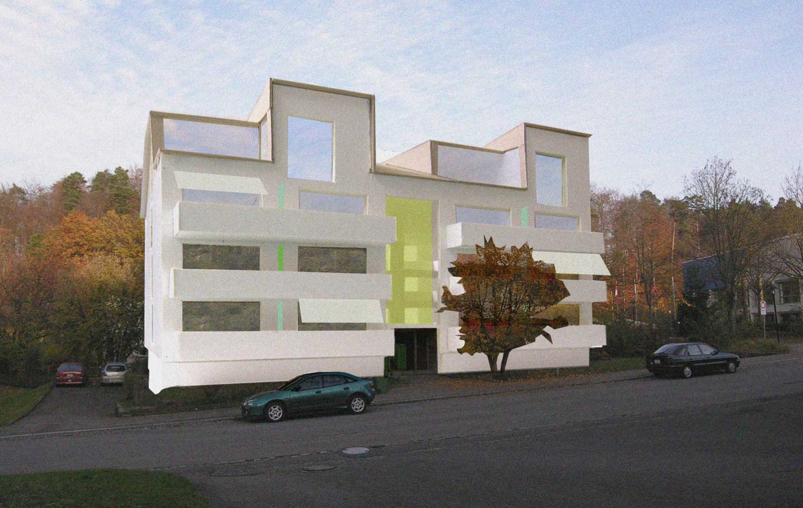 Renovation und Aufstockung eines Wohnblocks aus den fünfziger Jahren in Zürich – Kloten Auftraggeberin: Pensimo Management AG Studienauftrag 2005