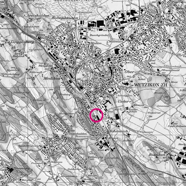 Das Bahnareal bildet sowohl räumlich wie masstäblich eine städtebauliche Zäsur zwischen dem Zentrum von Wetzikon und den aufstrebenden westlichen Quartieren. Traditionell haben sich im und entlang des Gleisfelds die linearen Bahninfrastrukturen selber wie auch die grossmassstäblichen Industrien angesiedelt. In Zukunft wird diese Akzentuierung und Sonderstellung des Gleisraumes durch neue Bebauungen innerhalb des Gestaltungsplangebiets noch verstärkt.
