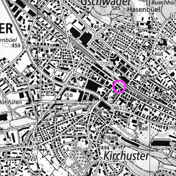 Am Bahnhofslatz von User sollen zwei Altbauten durch ein gemischtes Wohn- und Geschäftshaus ersetzt werden. Die hybride Nutzung auf engstem Raum ist komplex: Im Untergeschoss wird die Tiefgarage der Nachbarüberbauung erweitert, im Erdgeschoss sollen sich Läden und Gastronomie einmieten, darüber zwei Büro- und drei Wohngeschosse. Die Ausnutzung soll maximiert werden.